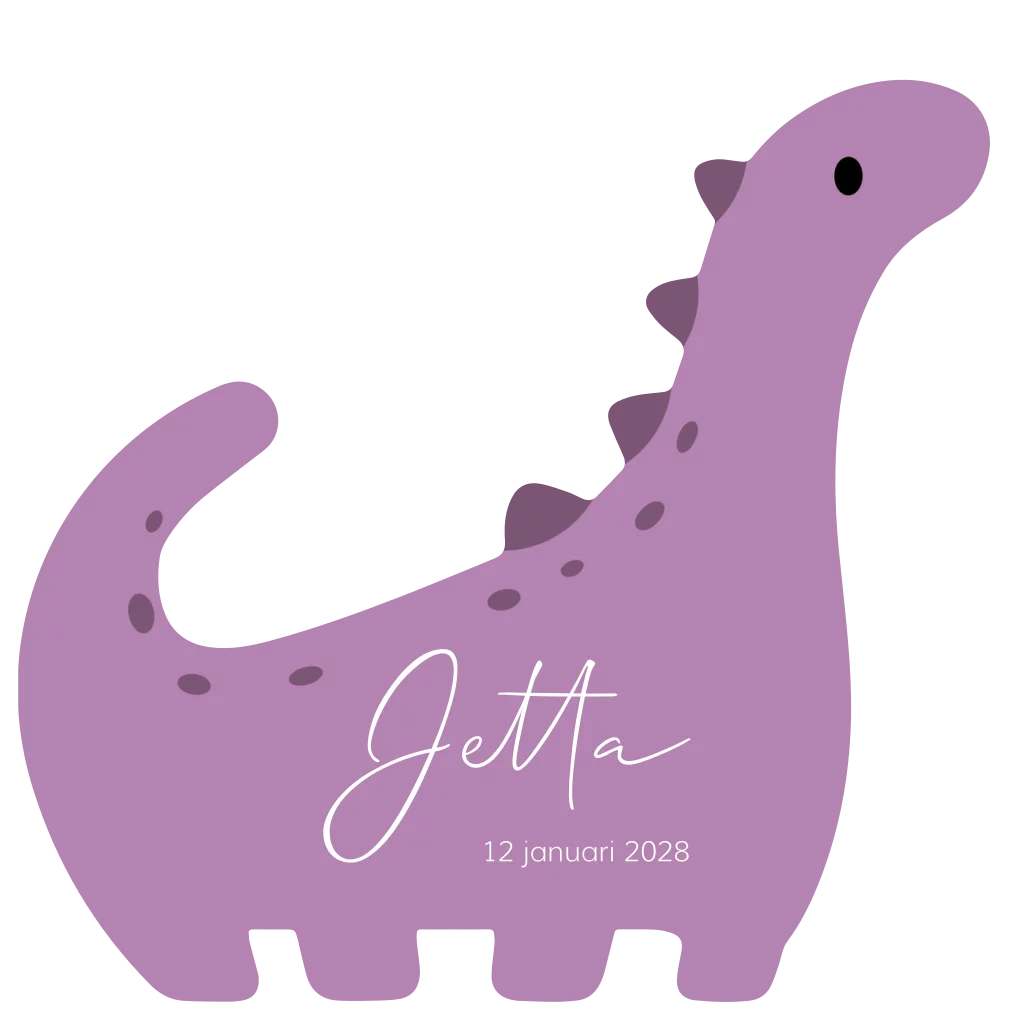 Geboortekaartje, gestanst in de vorm van een dino