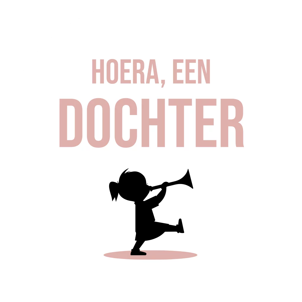 Sluitsticker met tekst 'Hoera, een dochter' en een meisje met trompet.