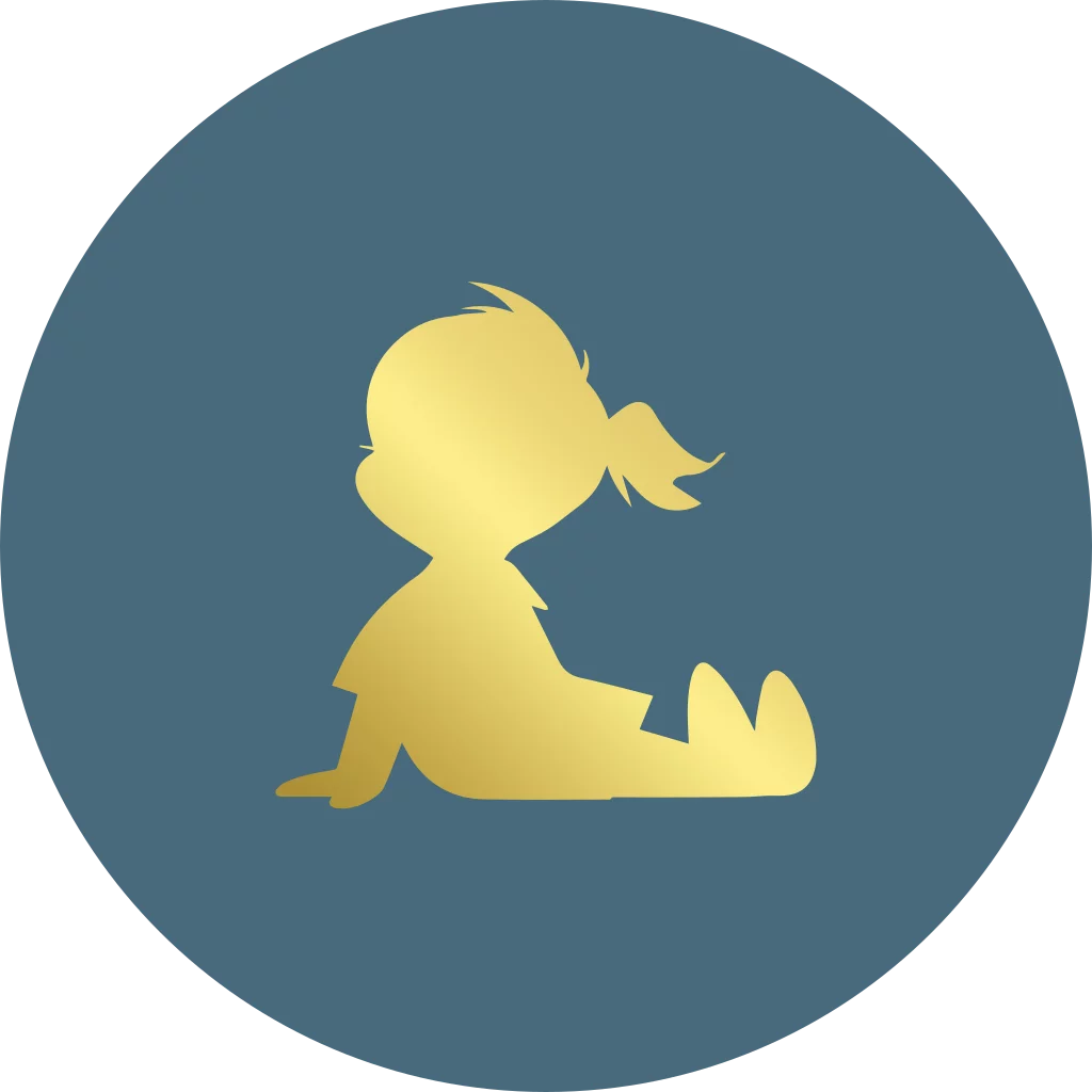 Sluitsticker met in goudfolie het silhouet van een zittend meisje. Maak je bestelling op deze manier echt af!