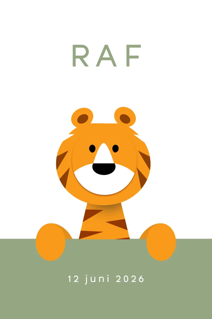 Geboortekaartje tijger tekst groen oranje