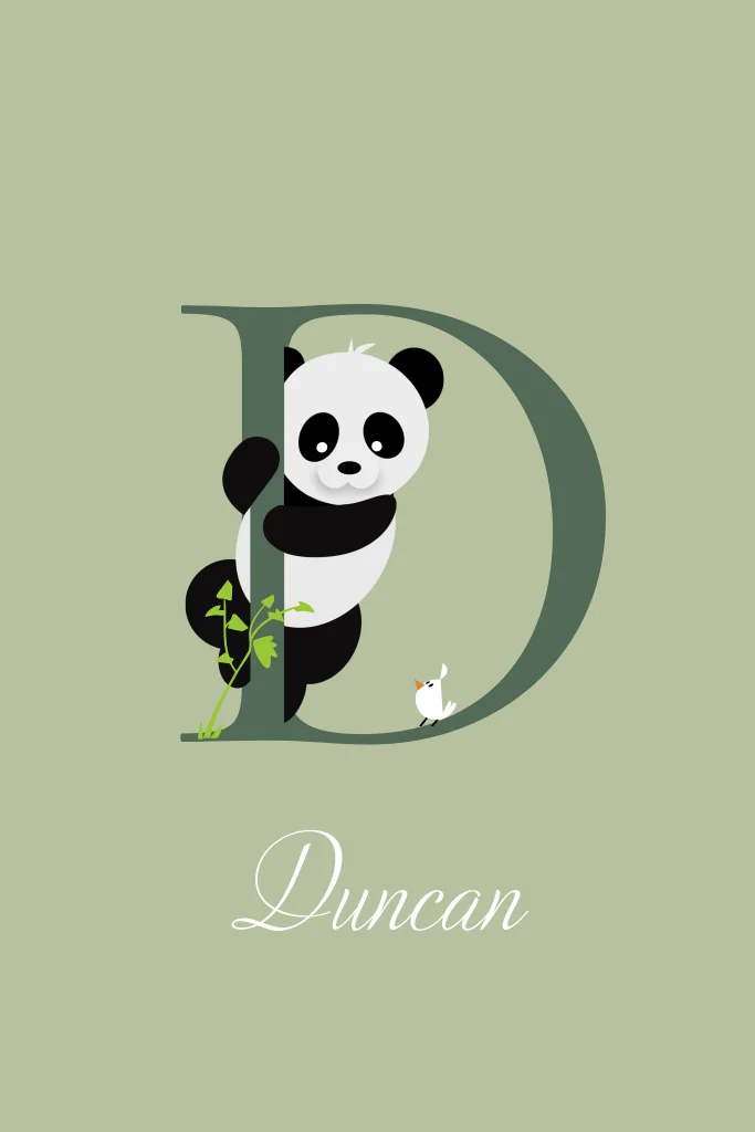 Geboortekaartje met een panda die in een letter klimt. Leuk typografisch geboortekaartje.