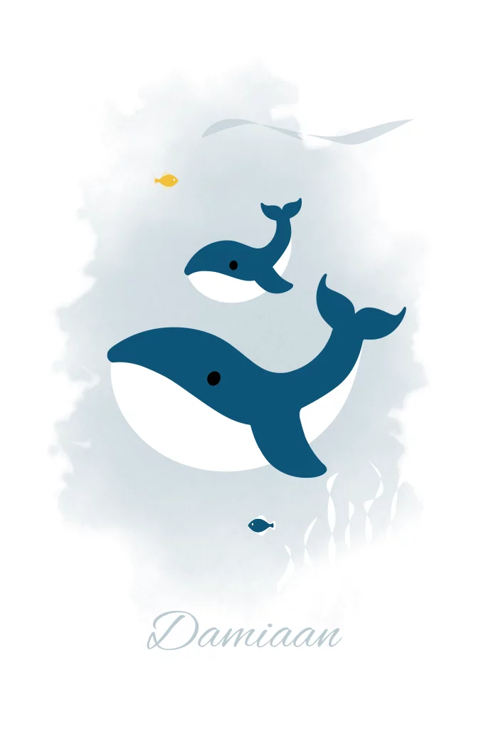 Geboortekaartje met twee walvissen. Leuk voor een tweede kindje!