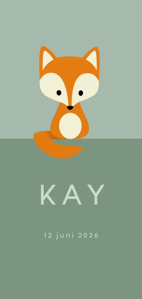 Simpel en strak geboortekaartje met een klein vosje met grote pluimstaart.