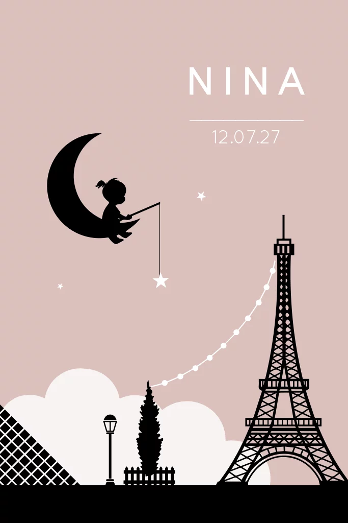 geboortekaartje meijse op maan eiffeltoren parijs silhouet