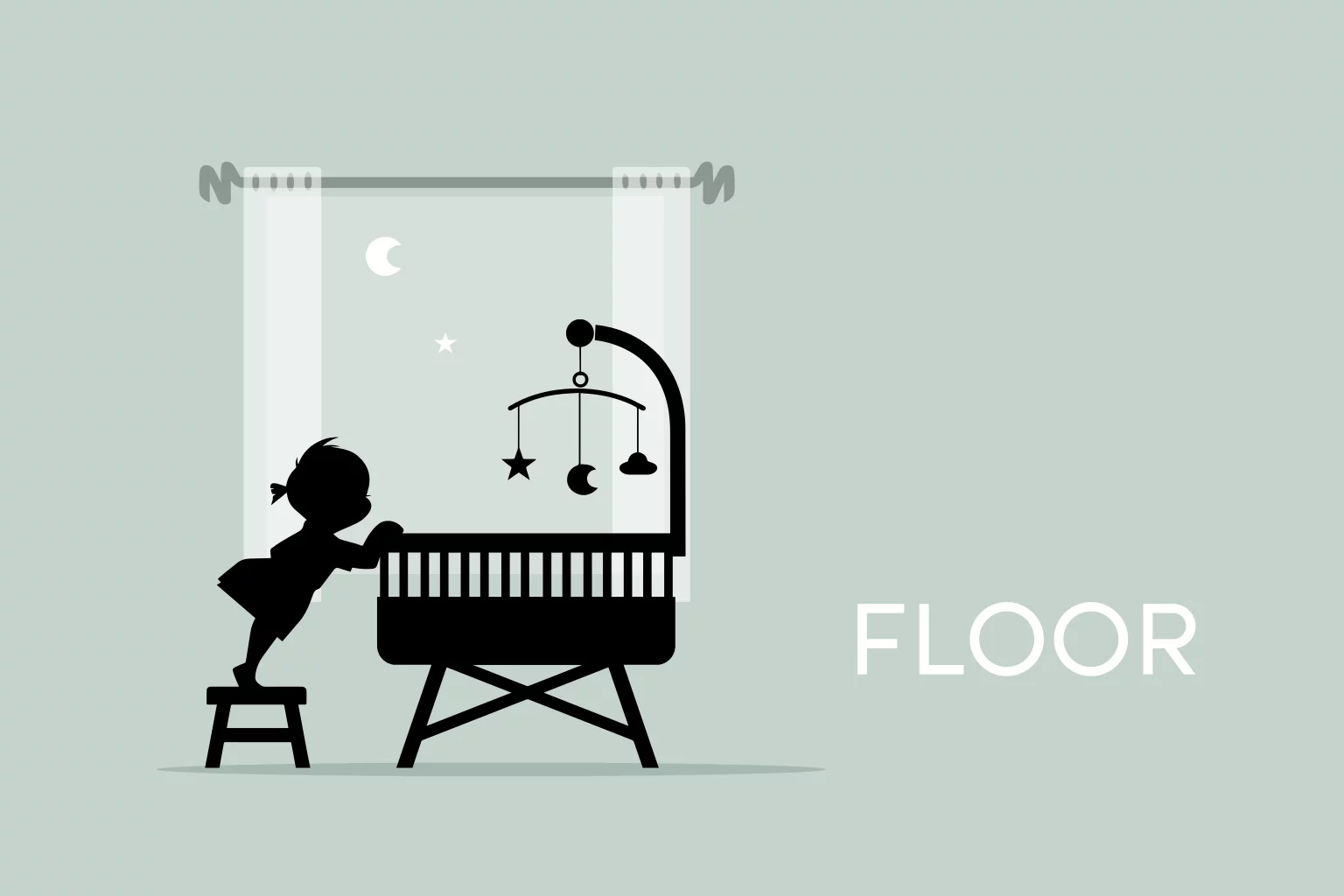 Geboortekaartje waarop je een meisje ziet dat over de rand van de wieg naar haar pas geboren zusje kijkt.