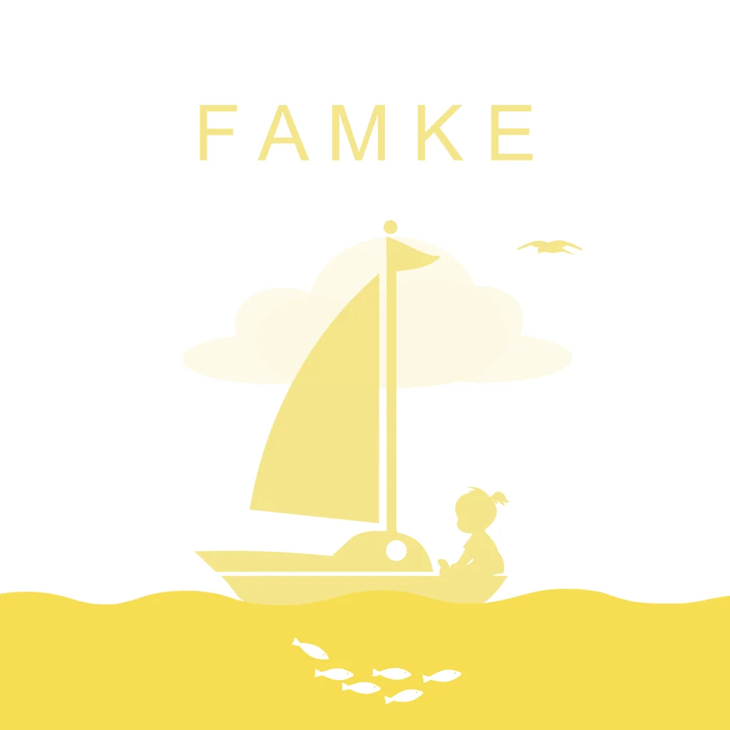 Geboortekaartje met een meisje dat in een zeilboot zit en naar een vuurtoren in de verte vaart.