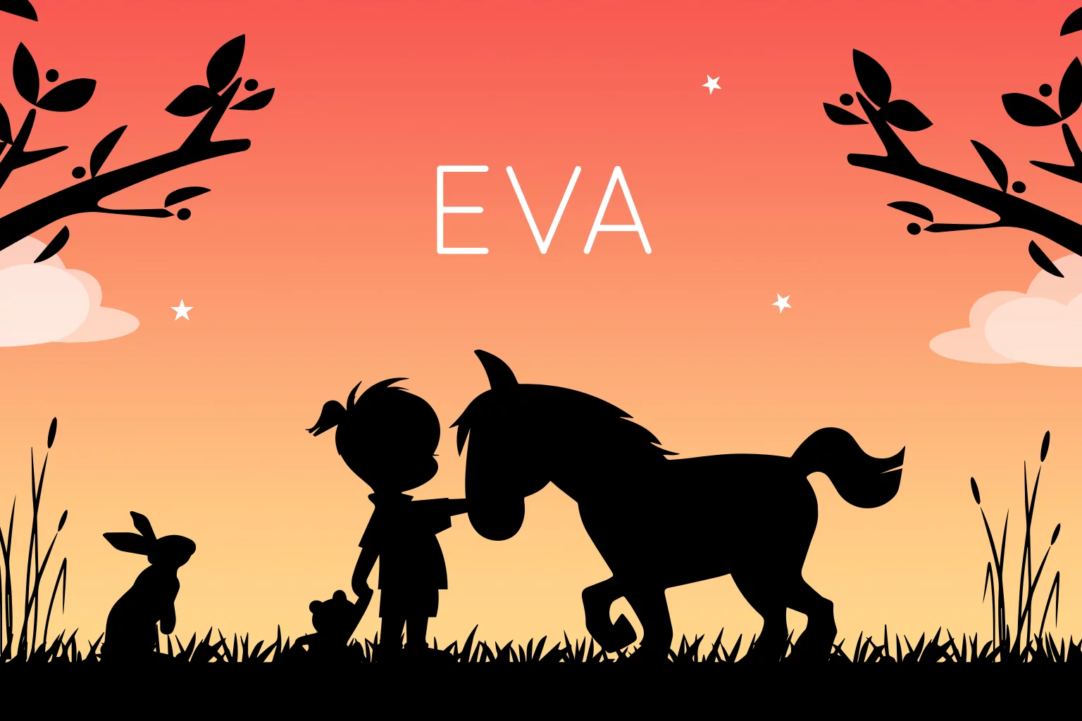 Geboortekaartje meisje en paard silhouet