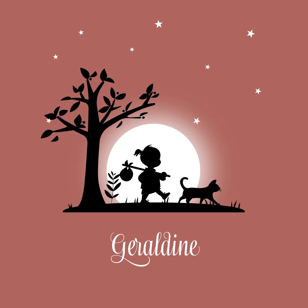 Silhouet geboortekaartje voor meisje in goudfolie met sfeervolle ondergaande zon