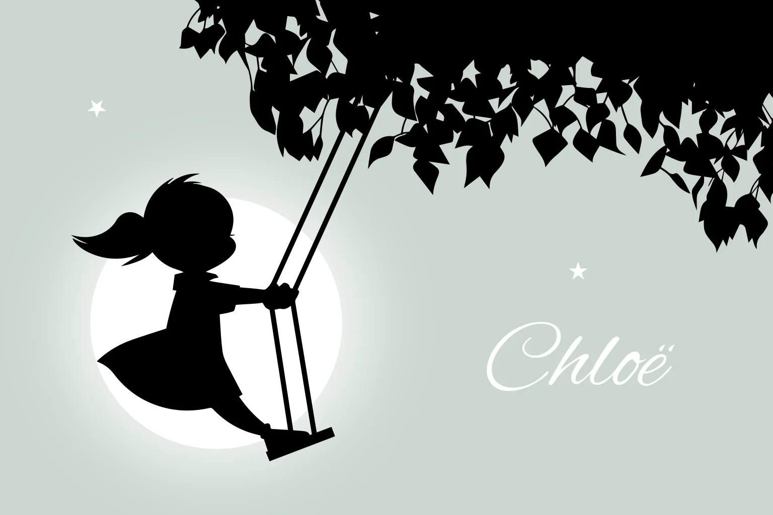 Geboortekaartje meisje schommel silhouet ondergaande zon