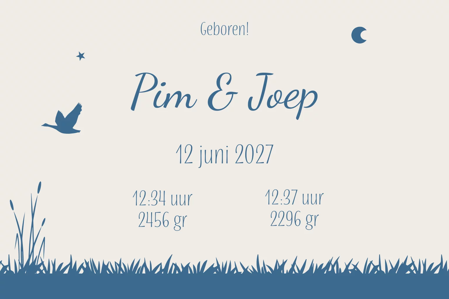 Geboortekaartje tweeling blauw grote broer bolderkar