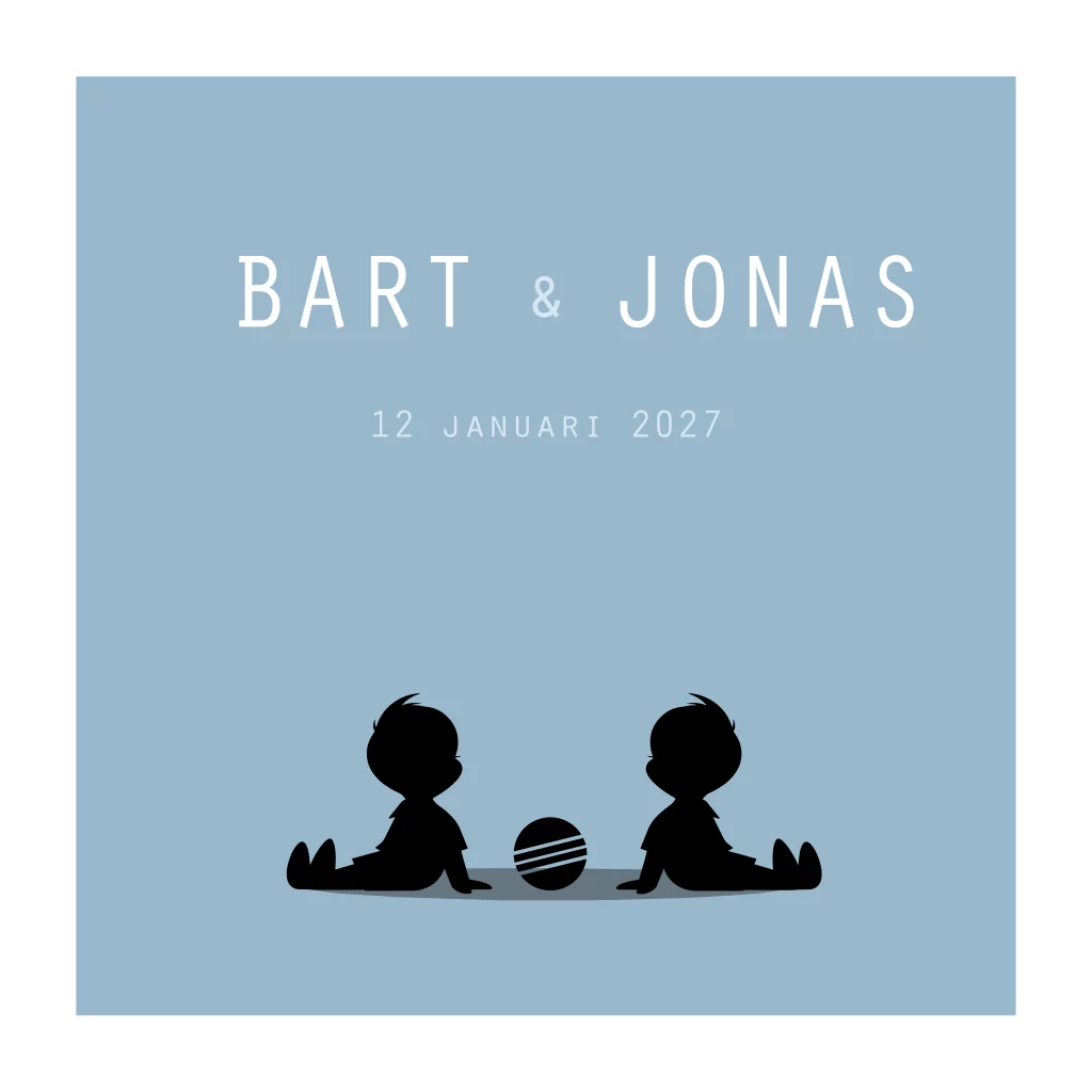 Geboortekaartje tweeling twee zittende silhouetjes blauw