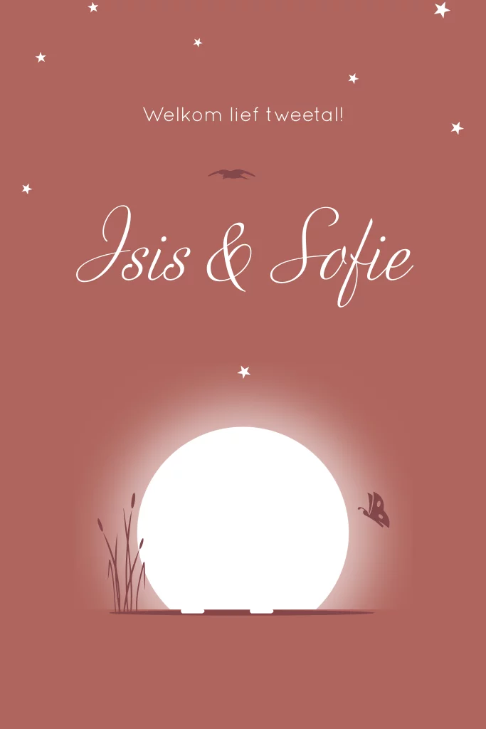 Geboortekaartje tweeling ondergaande zon