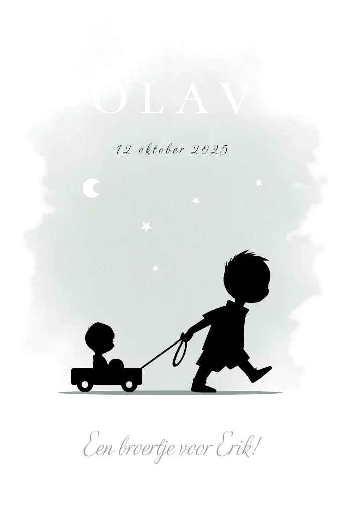 Geboortekaartje twee kinderen silhouet broertje