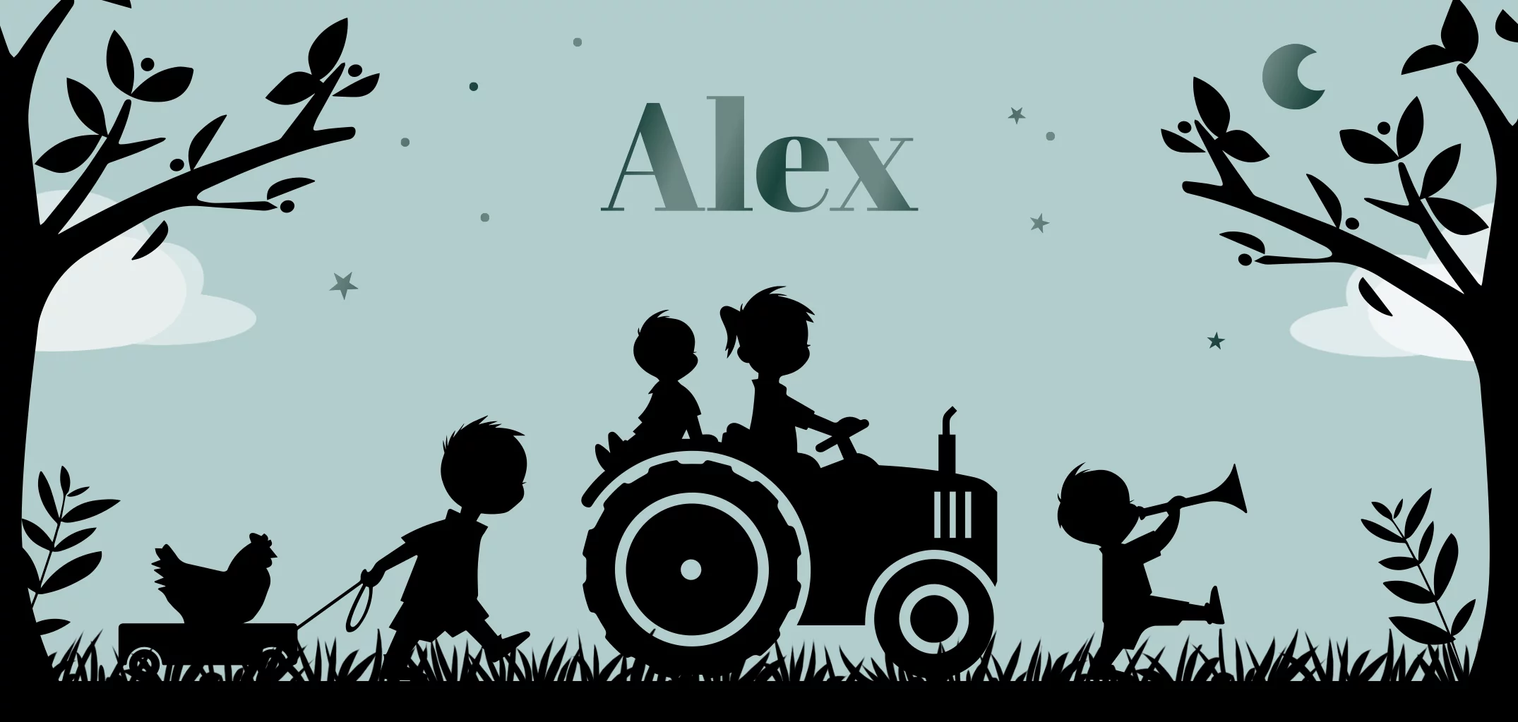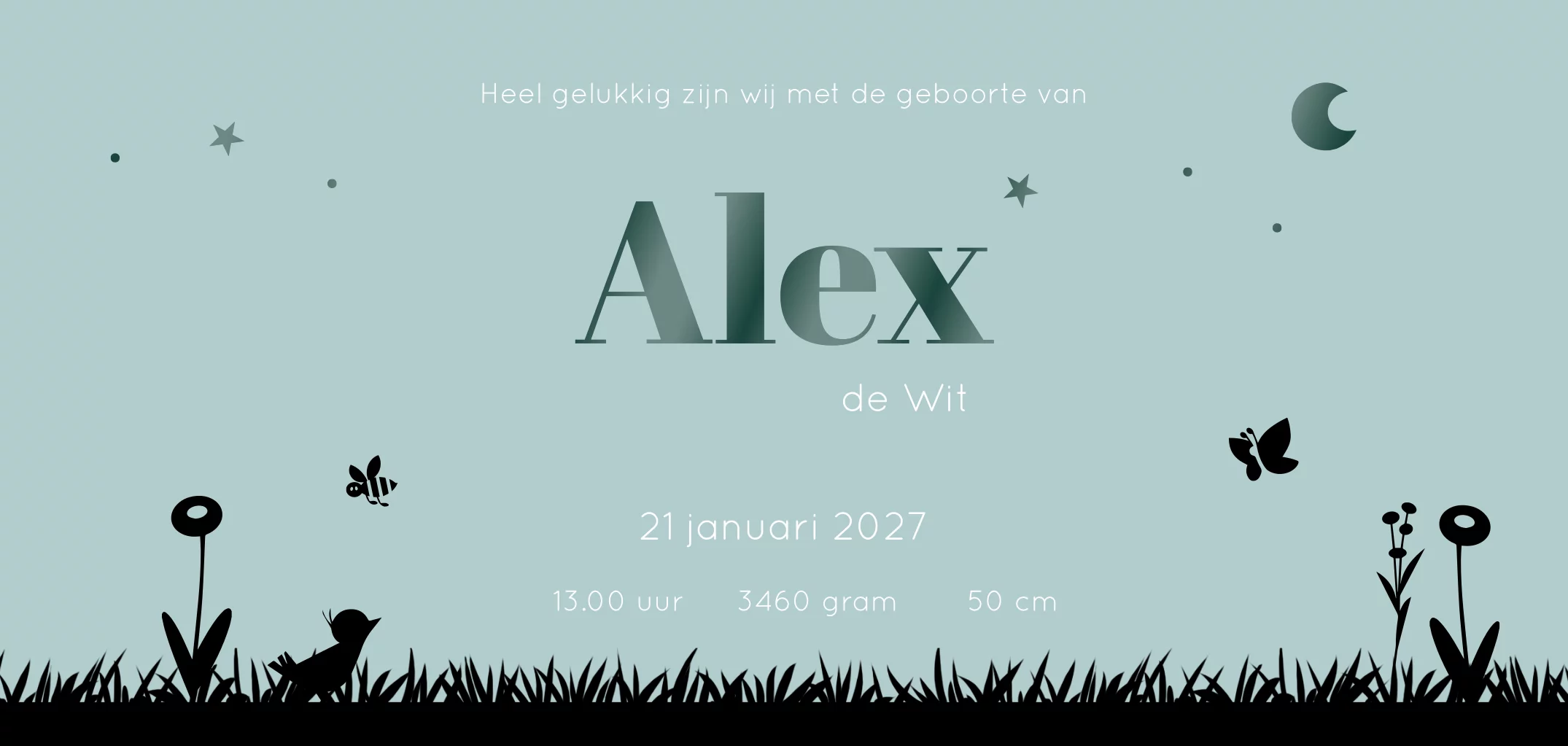 Geboortekaartje vier kinderen hoogglans silhouet tractor