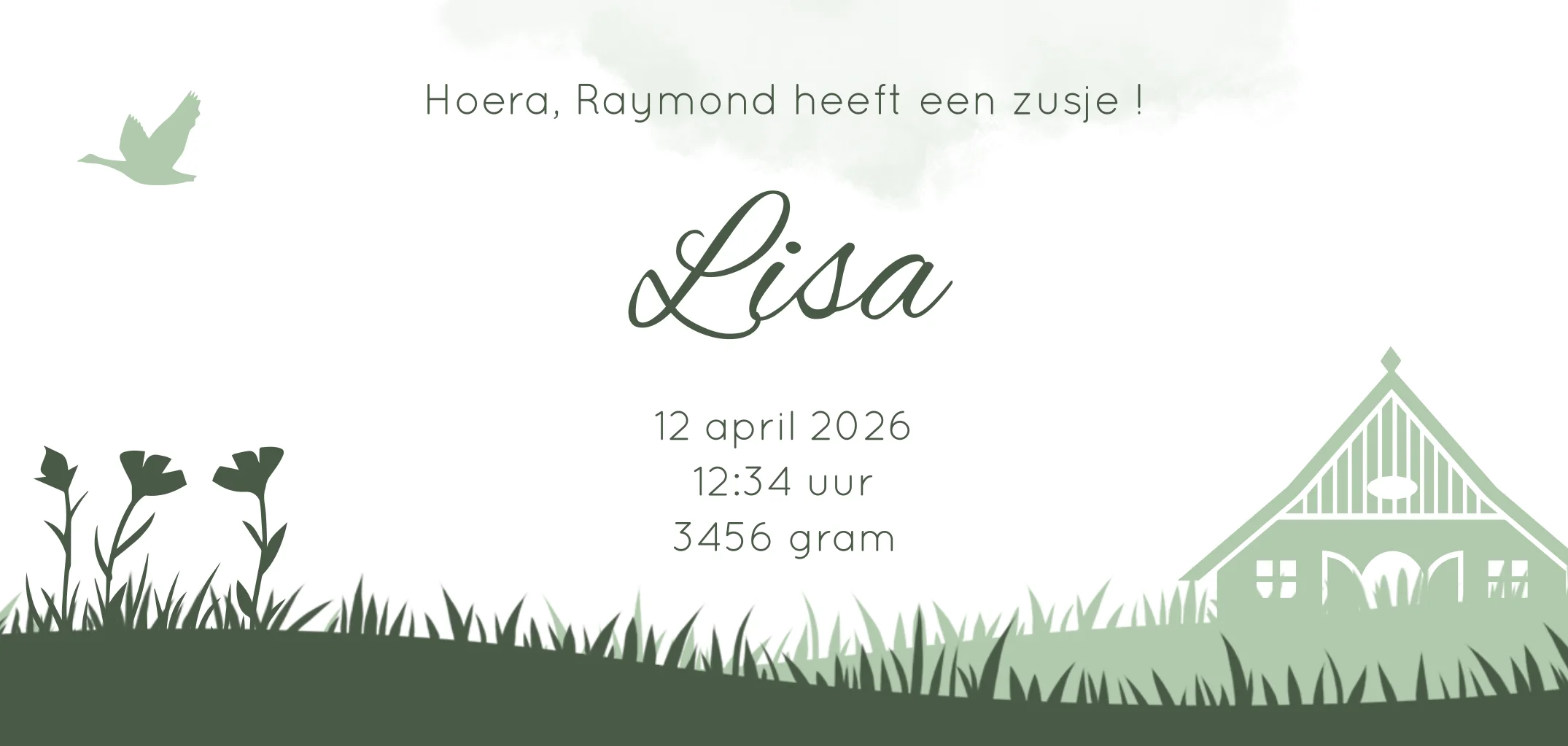 Geboortekaartje zusje kruiwagen boerderij herfst