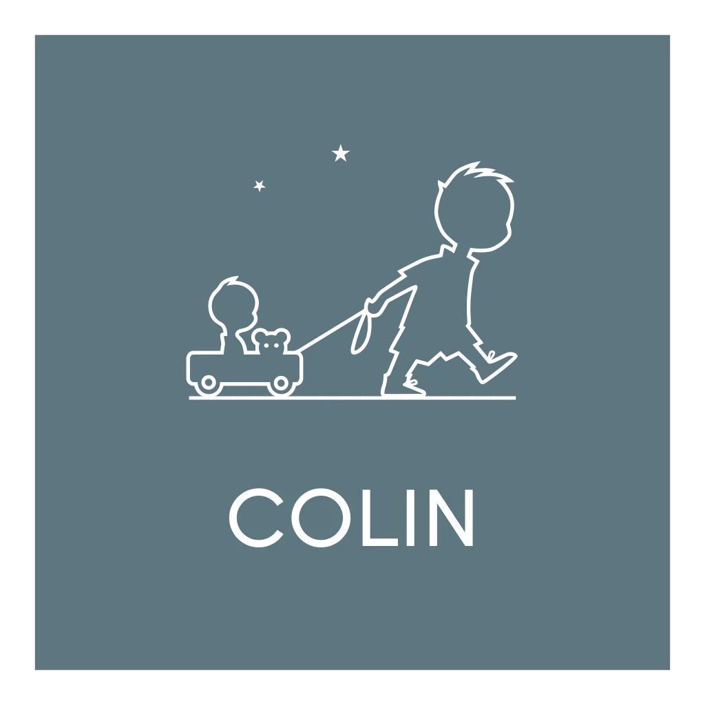 Geboortekaartje waarop in lijn jongen die broertje trekt in bolderkar.