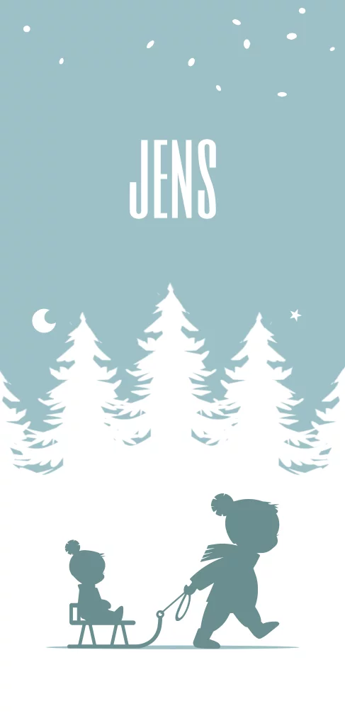 Winters geboortekaartje voor een tweede kindje, waarbij het geslacht van elk kindje kan worden aangepast.