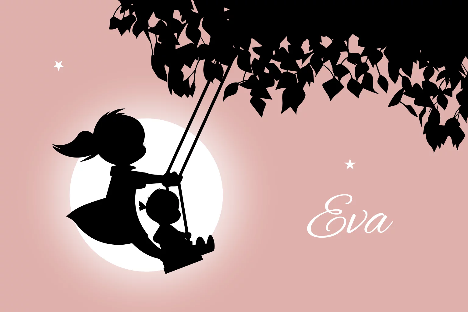 Geboortekaartje twee zusjes schommel silhouet