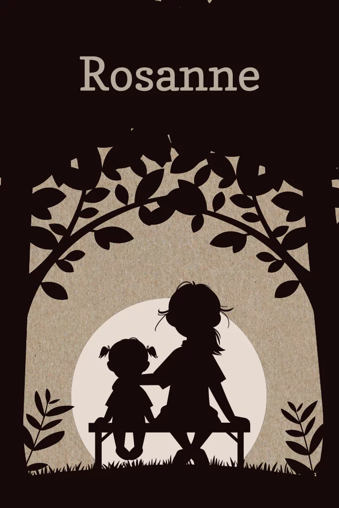 Romantisch geboortekaartje waarop zichtbaar twee kinderen die op een bankje naar de ondergaande zon zitten te kijken.