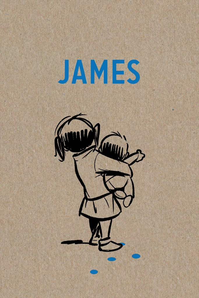 Stoer enkel geboortekaartje op extra zwaar kraft papier met een zwart-wit illustratie van een grote zus dat een kleine baby omhoog houdt.